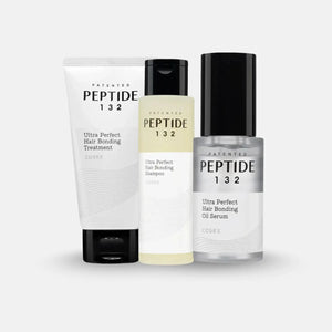 The PEPTIDE-132 Ultra Perfect Hair Bundle is a complete bond-repair + strengthening + shine-boosting hair care system designed to revive damaged, dry, and chemically treated hair. Powered by PEPTIDE-132 Complex, this trio works together to repair broken bonds, smooth frizz, restore elasticity, and protect hair from daily damage.